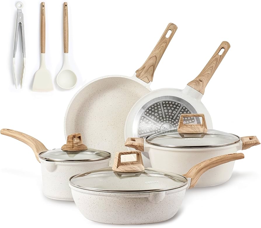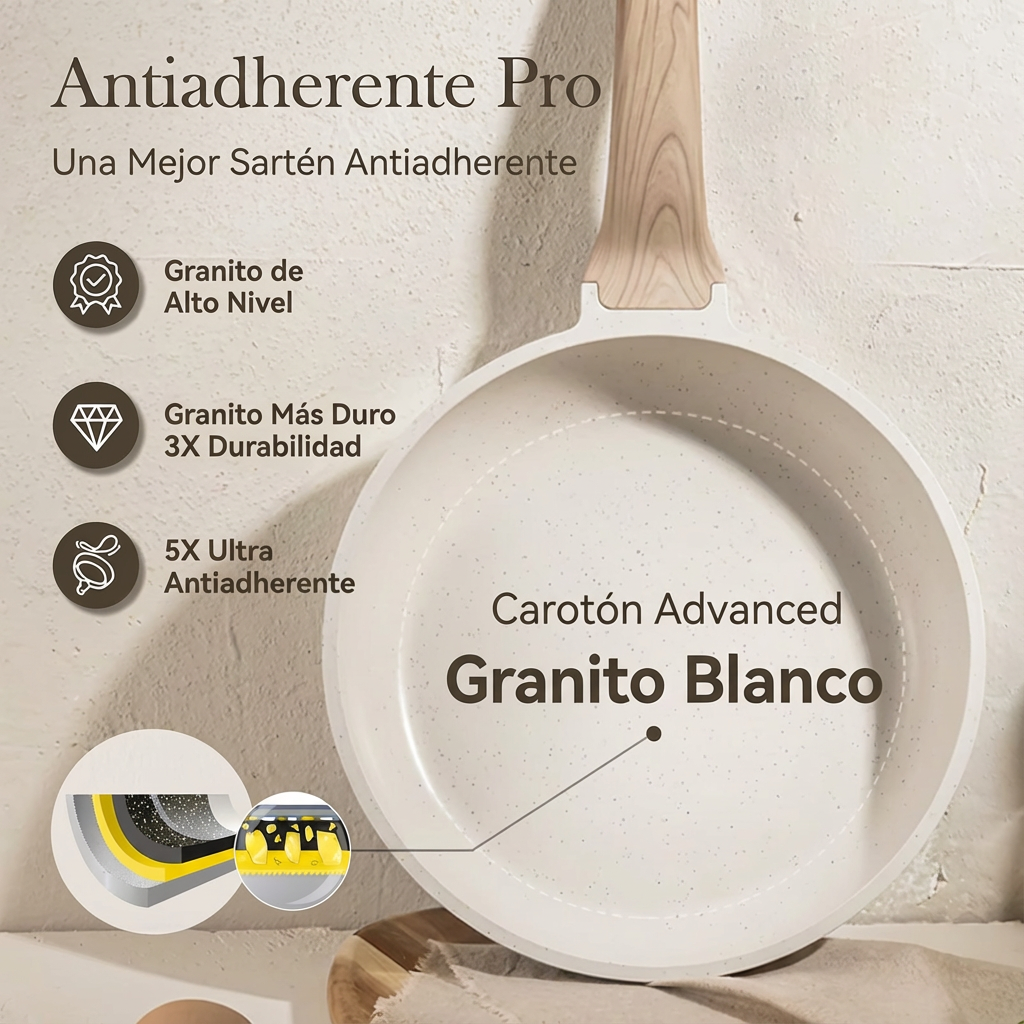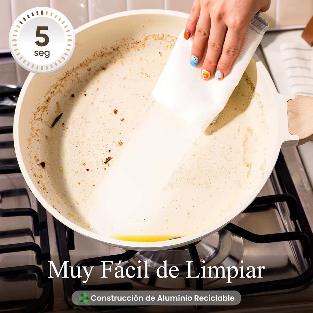 Jogo de Panelas 5 Peças + Utensílios – Antiaderente de Granito com Cabo de Madeira